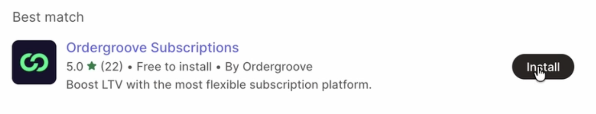 Click Apps on the bottom left. Type in Ordergroove, and Search in the Shopify App Store.